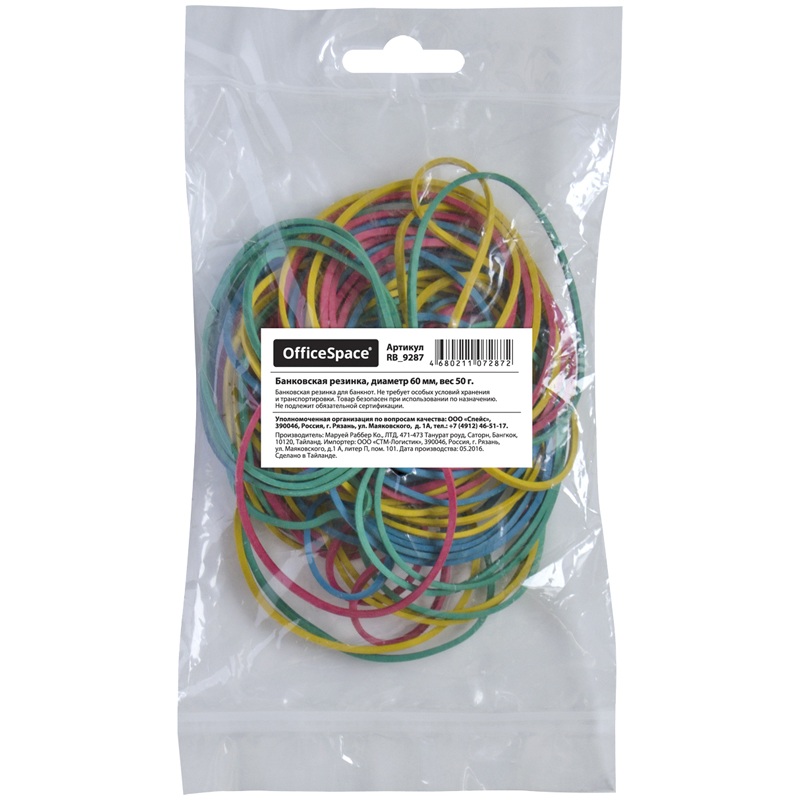 Резинки для денег 50г/60мм цветные (65шт) Офис-спейс RB_9287