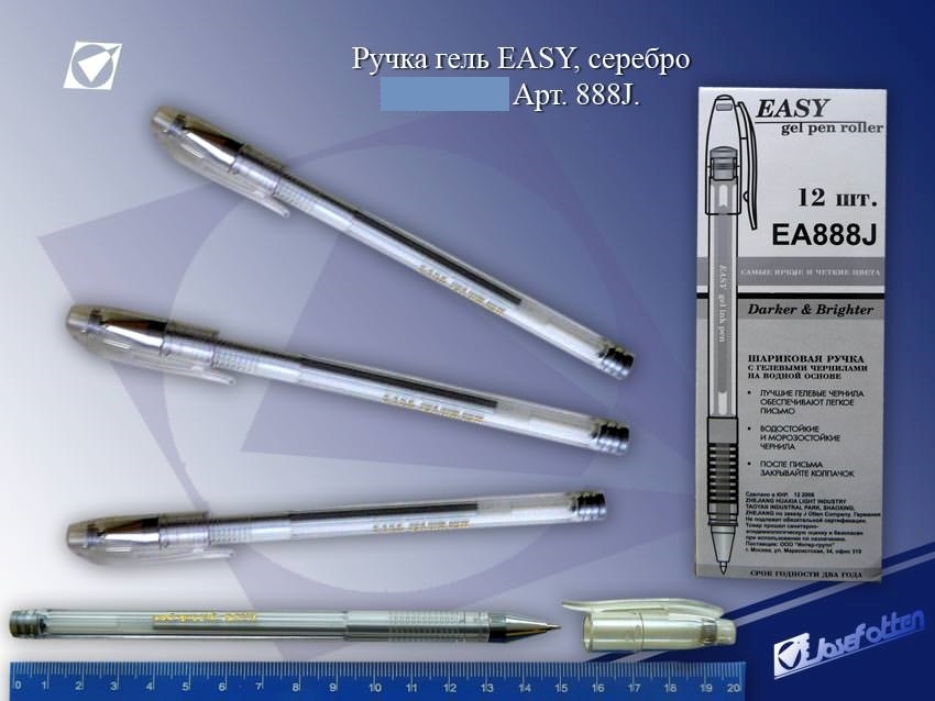 Ручка гель Easy 888J серебро 0,7мм прозрачный корпус