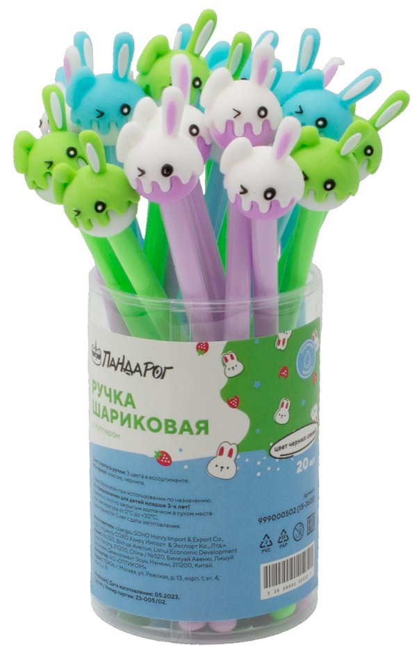 Ручка-игрушка Зайчик ПандаРог 15-3628 синяя 0,8мм игольчатая, масляная