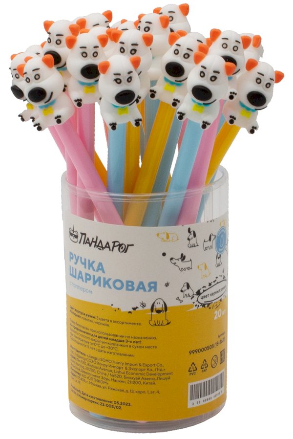 Ручка-игрушка Щенок ПандаРог 15-3631 синяя 0,8мм игольчатая, масляная