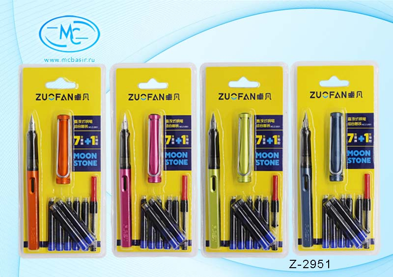 Ручка перьевая Basir синяя (+7 катриджей) Z-2951 на блистере, цветной корпус quantity