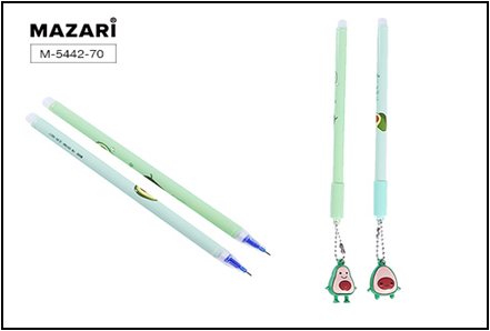 Ручка пишет-стирает гелевая Mazari Cool синяя 0,5мм M-5442 игольчатая с брелком Авокадо