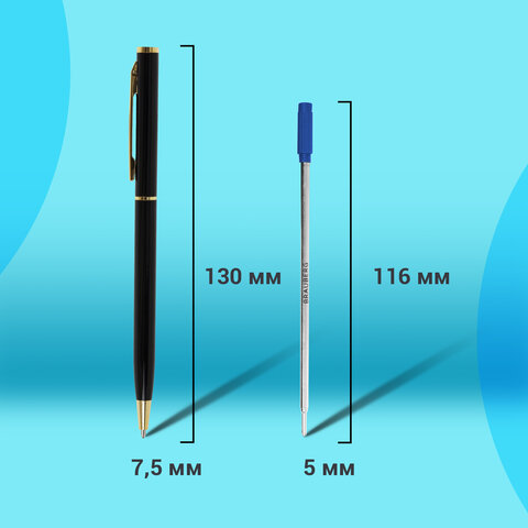 Ручка подарочная в коробке Brauberg Slim Black синяя 1,0мм 141402 черный мет.корпус поворотная