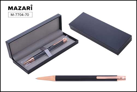Ручка подарочная в футляре Mazari Elatio BRG синяя 0,7мм M-7704 черный мет.корпус с зол., поворотная
