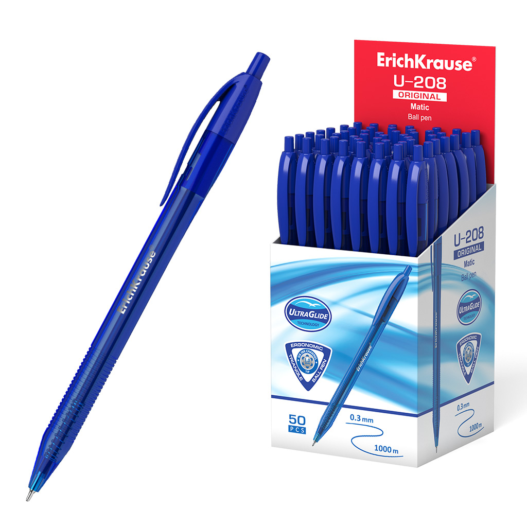 Ручка трехгранная шар.авт. ErichKrause U-208 синяя 1,0мм 47602 синий корп, игольчатая Original Matic