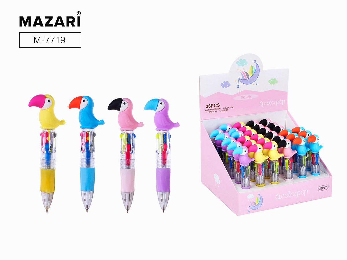 Ручка шар.авт. 4-х цветная Mazari Toucan M-7719 Тукан, цветной корпус с клипом-фигуркой