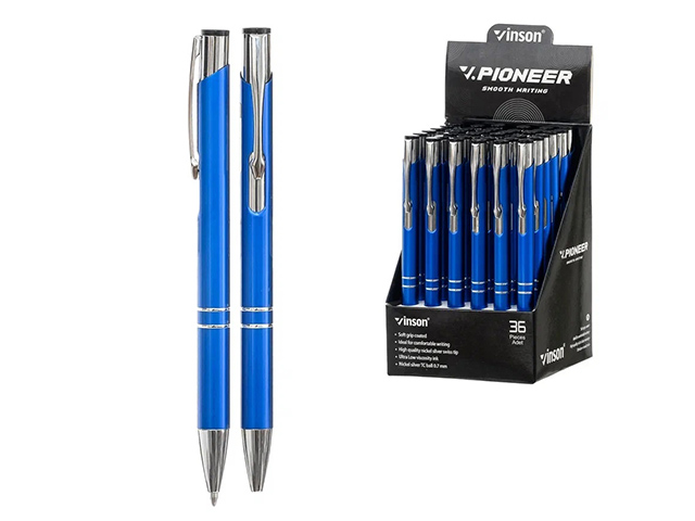 Ручка шар.авт. Vinson Pioneer 8016/с синяя 0,7мм синий метал.корпус, масляная, офисная