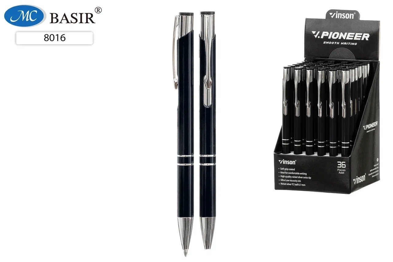 Ручка шар.авт. Vinson Pioneer 8016/ч синяя 0,7мм черный метал.корпус, масляная, офисная