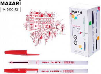 Ручка шар. Mazari Galanta красная 0,7мм M-5900-72 маслянная белый корпус (стержень 139мм)