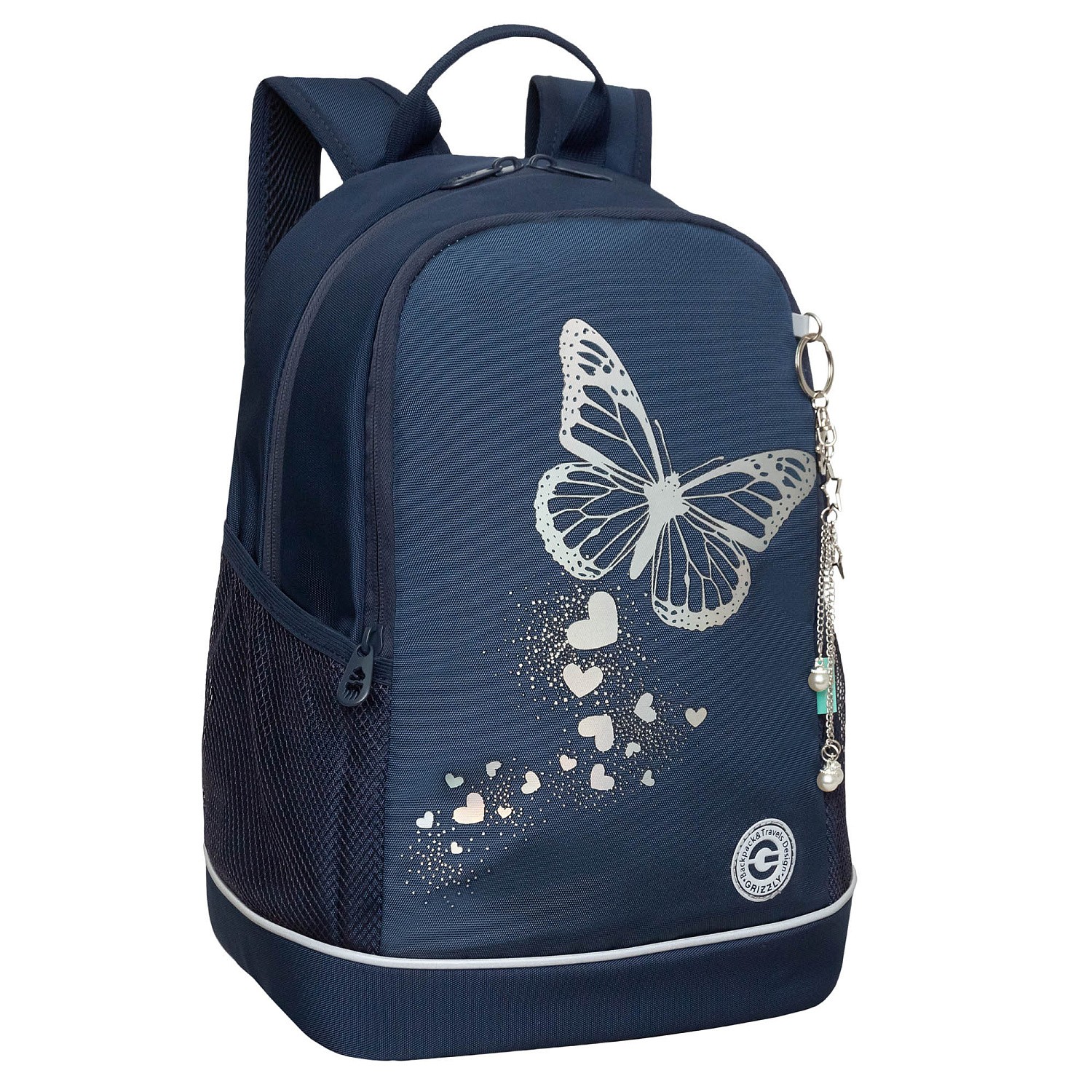 Рюкзак молодежный 19л Grizzly женский Бабочка синий, жестк.спинка 28*38*18см RG-463-5