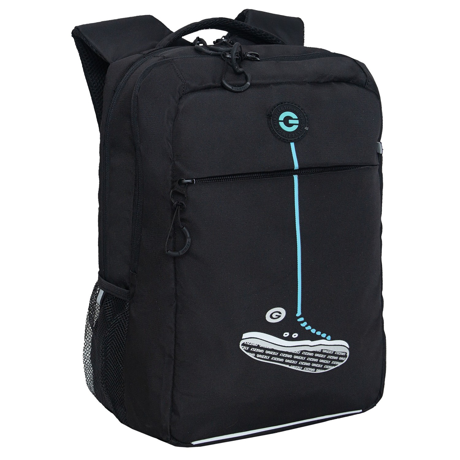 Рюкзак молодежный 19л Grizzly мужской Кроссовок черно-голубой, анат.спинка 26*39*19см RB-456-6