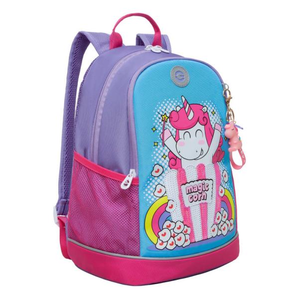 Рюкзак школьный 19л Grizzly женский Единорожка фиолетово-розовый, жестк.спинка 28*38*18см RG-363-1