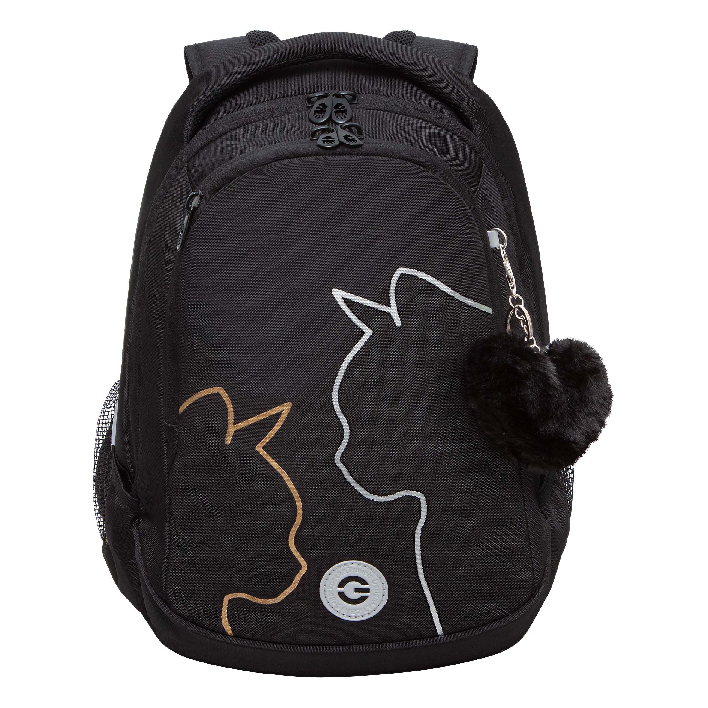 Рюкзак школьный 23л Grizzly женский Силуэт кошек черно-золотой, анатом.спинка 29*40*20см RD-440-3