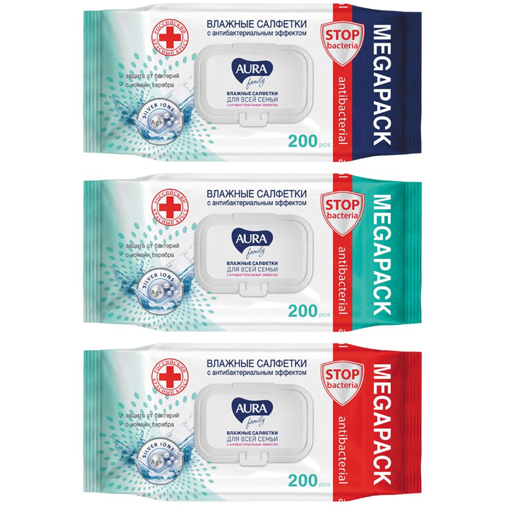 Салфетки влажные 200шт Aura Family для всей семьи 3057 крышка-клапан, неткан.мат-л 15*14см ш/к03057
