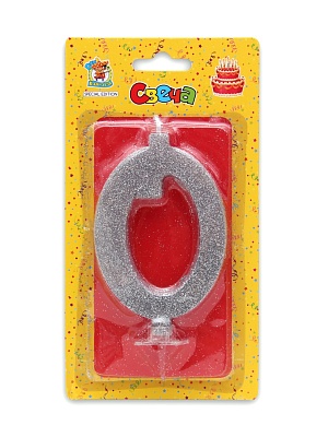 Свеча Цифра (0) Серебро глиттер малая на блистере Дон карнавал С-1828 quantity
