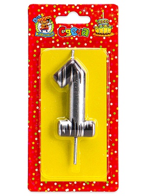 Свеча Цифра (1) Серебро Шебби шик на блистере Дон карнавал С-2500