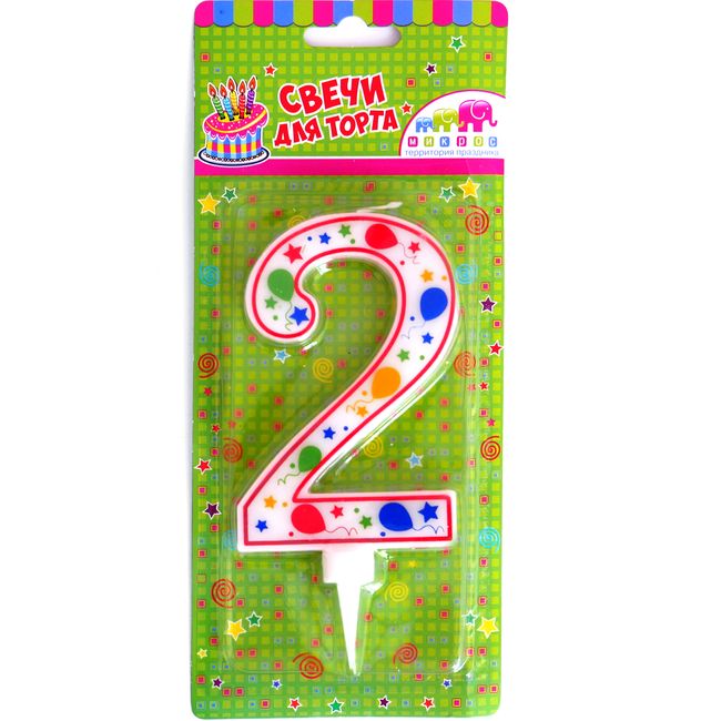 Свеча Цифра (2) Воздушные шарики цветные 11,5см на блистере Микрос Ч16552