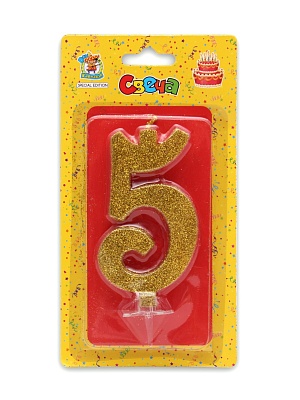 Свеча Цифра (5) Золотой глиттер малая на блистере Дон карнавал С-1823
