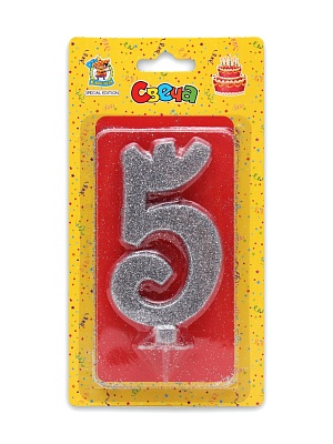 Свеча Цифра (5) Серебро глиттер малая на блистере Дон карнавал С-1833 quantity
