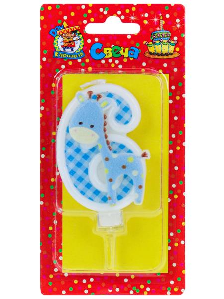 Свеча Цифра (6) Жирафик синий на блистере Дон Карнавал С-8310