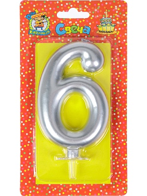 Свеча Цифра (6) Серебро металлик большая на блистере Дон карнавал С-1878