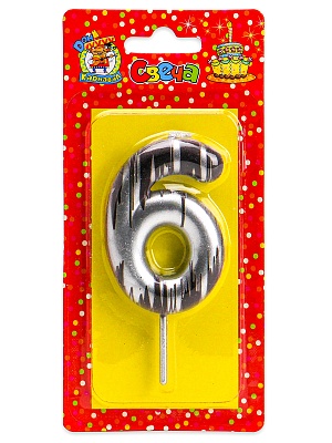 Свеча Цифра (6) Серебро Шебби шик на блистере Дон карнавал С-2505