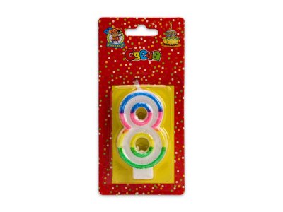 Свеча Цифра (8) Блеск с разноцветной окантовкой на блистере 7*4см С-2423 quantity
