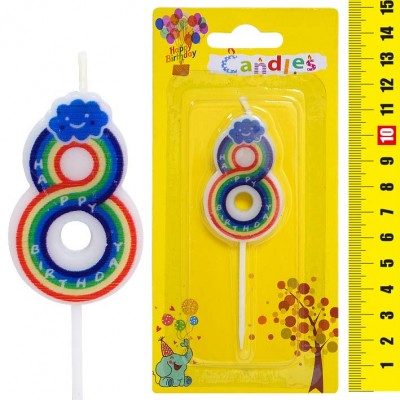 Свеча Цифра (8) Радуга на блистере 3,5*5см 5856