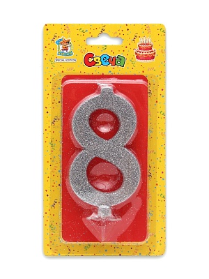 Свеча Цифра (8) Серебро глиттер малая на блистере Дон карнавал С-1836 quantity