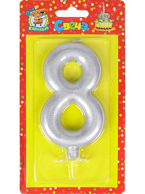 Свеча Цифра (8) Серебро металлик большая на блистере Дон карнавал С-1880 quantity