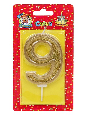 Свеча Цифра (9) Золотой глиттер с окантовкой на блистере Дон карнавал С-5983 quantity