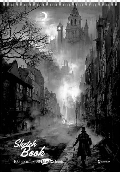 Скетчбук для зарисовок А4 30л спираль тв/обл Призрачный замок (160гр) бумага черная Lamark 43575