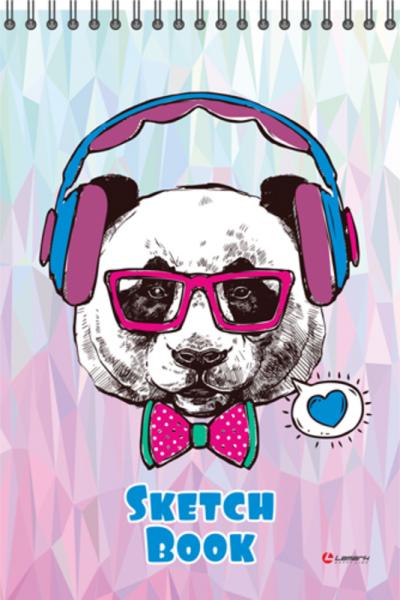 Скетчбук для зарисовок А5 40л спираль тв/обл Панда в наушниках (80гр) бумага черная Lamark 26684