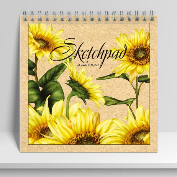 Скетчпад для зарисовок А5 40л спираль карт/обл Подсолнухи (120гр) софт-тач лак текст. Академия 13277