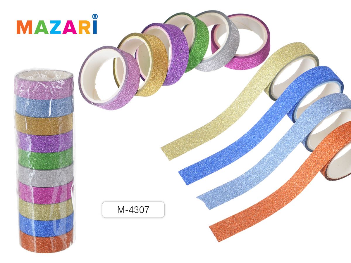 Скотч декоративный 15мм*3м с блестками ассорти Mazari M-4307
