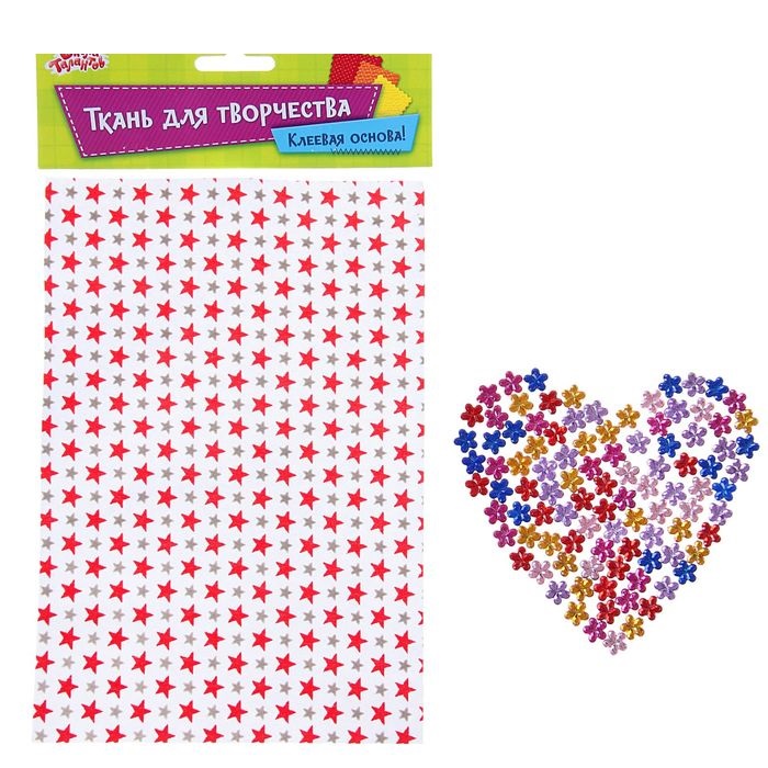 Скпапбукинг. Ткань самоклейка №273 + стразы 5гр на листе 21*14,5см 1445922 quantity