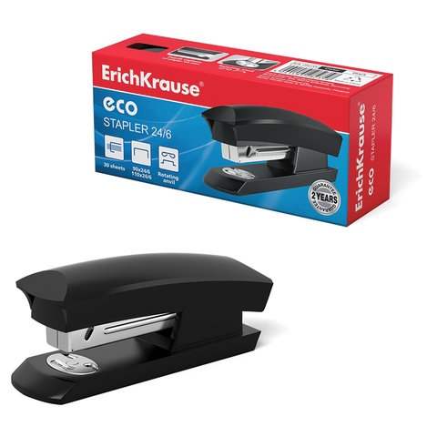 Степлер №24 30л ErichKrause Eco черный пластик 28235