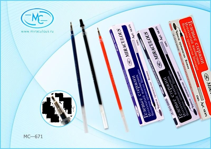 Стержень гель игольчатый 129мм синий 0,5мм МС-671
