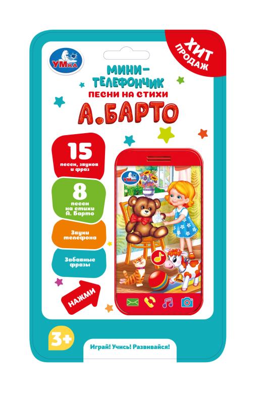 Телефон музыкальный мини Барто А. (15 песен, звуков, фраз) в блистере 3+ Умка HT629-R quantity