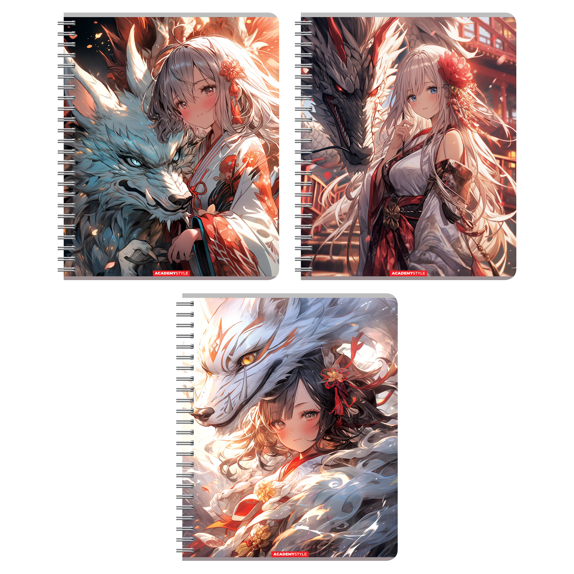 Тетрадь спираль 48л Академия Девушка и дракон (3 вида) полн.УФ-лак 14600/3 белизна 100%