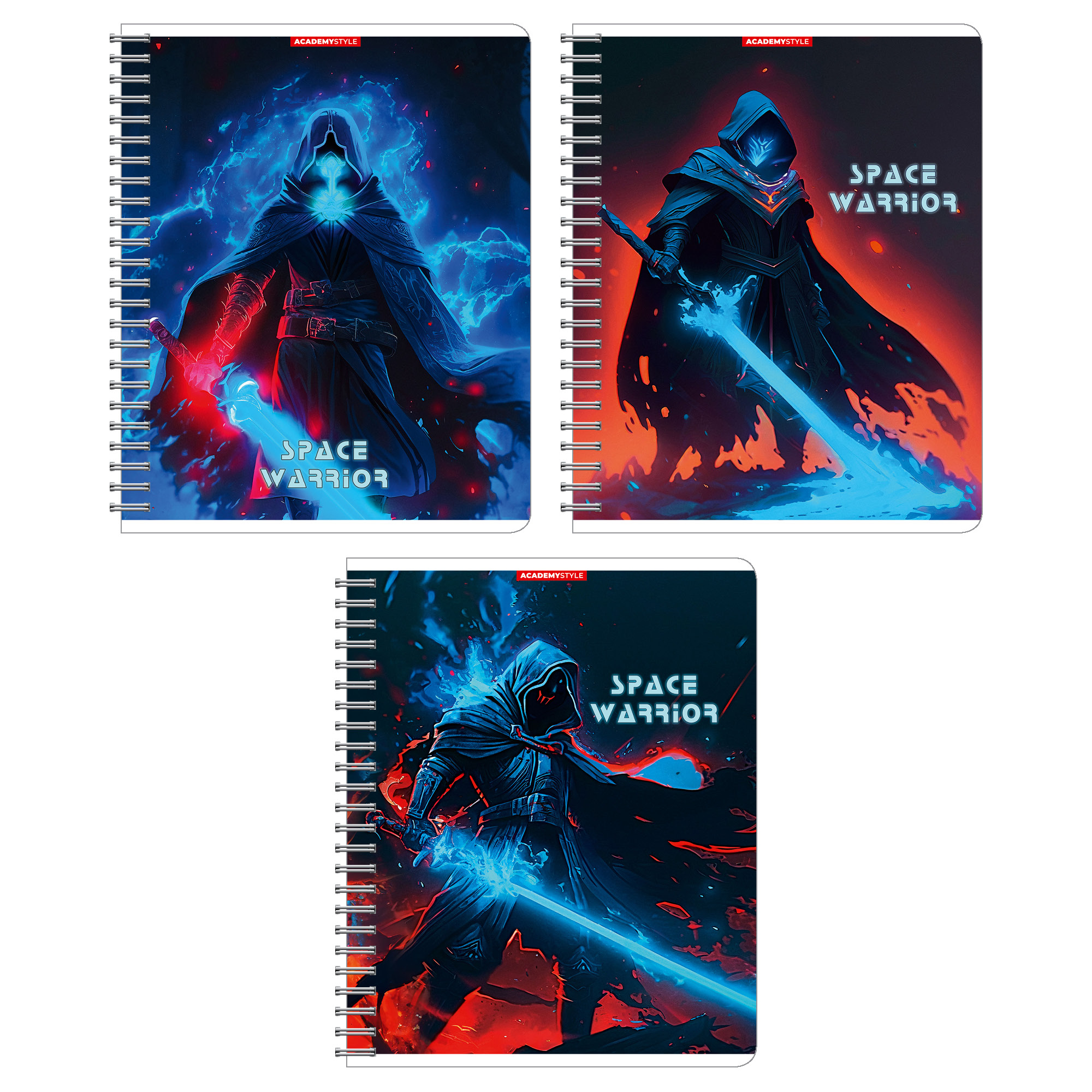 Тетрадь спираль 48л Академия Космический воин (3 вида) твин.УФ-лак, металл.пл. 14606/3 белиз.100%