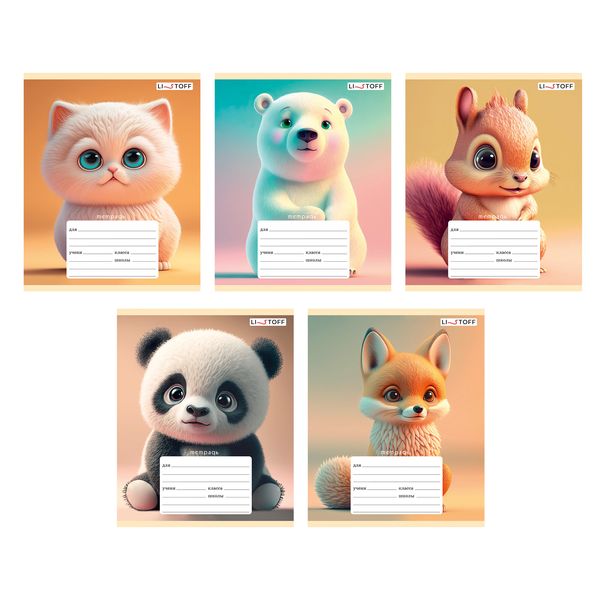 Тетрадь 12л клетка цвет/обложка Зверята (на однотоне) мел.карт. выб.лак Эксмо ТКЛ128880 белизна 100%