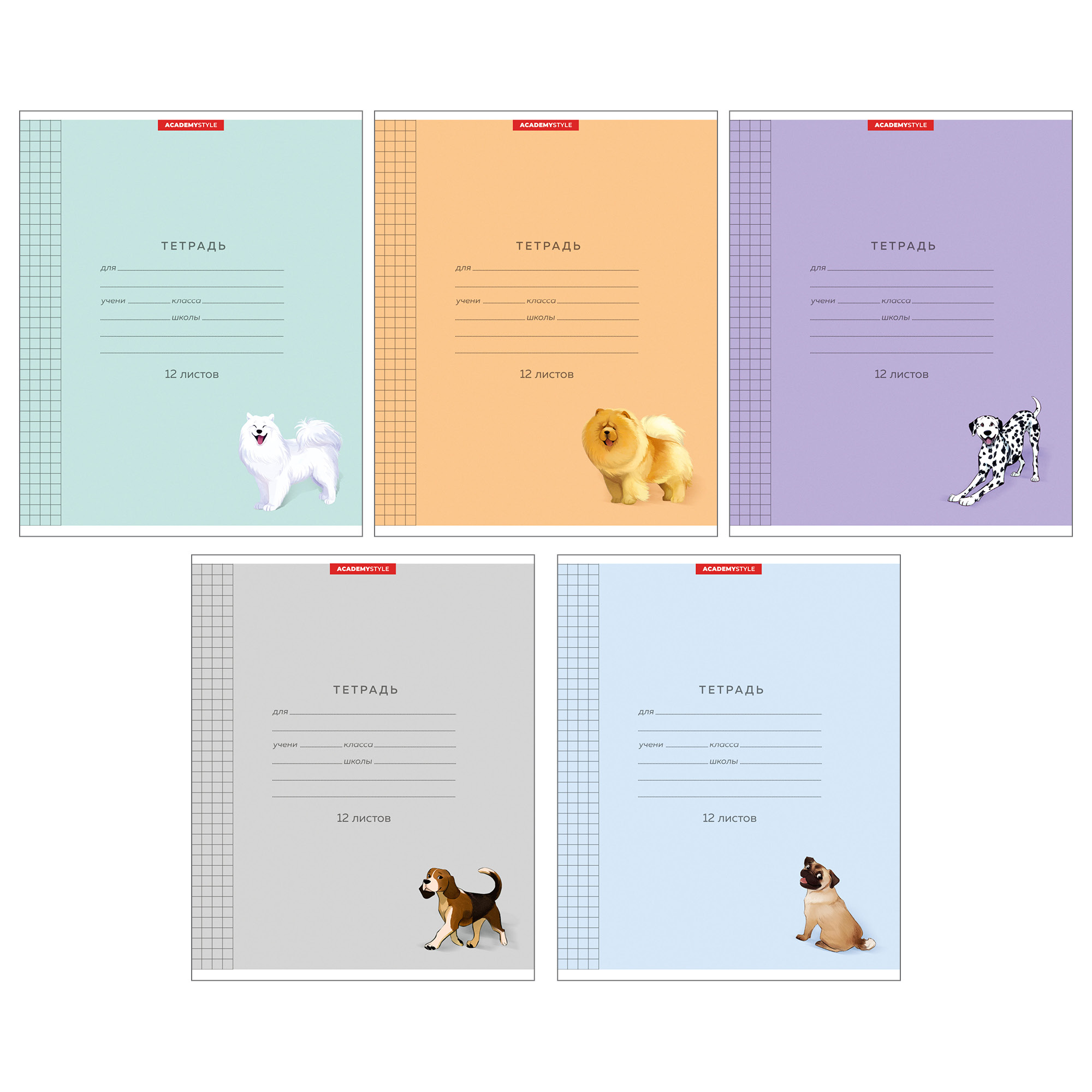 Тетрадь 12л клетка цвет/обложка Собачки (5 видов) ВД-лак Академия 13379/5 белизна 100%