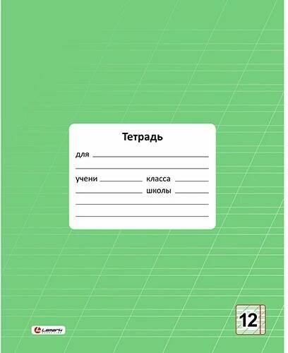Тетрадь 12л линия КОСАЯ цвет/обложка однотонная Зеленая, мел.картон Lamark 23713 белизна 100%