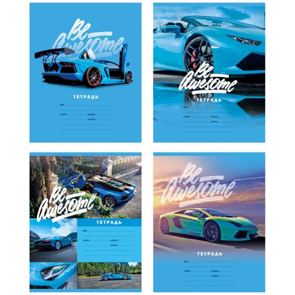 Тетрадь 12л линия УЗКАЯ цвет/обложка Супер тачка (4 вида) мел.карт. Биджи Т5ск12 9549