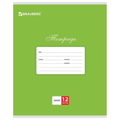 Тетрадь 12л линия цвет/обложка однотонная Зеленая яркая, мел.картон Brauberg 104726 белизна 100%