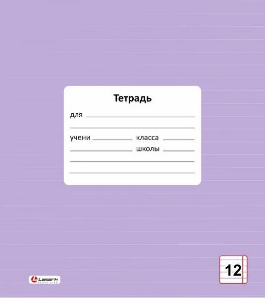 Тетрадь 12л линия цвет/обложка однотонная Лавандовая, мел.картон Lamark 58524 белизна 100%