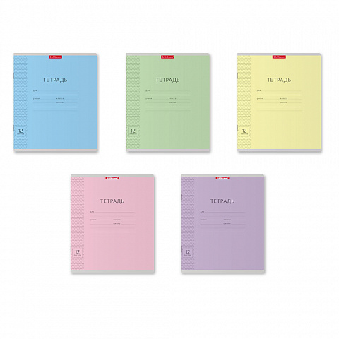 Тетрадь 12л линия ЧАСТАЯ КОСАЯ цвет/обложка однотонная (пастельная 5 видов) ErichKrause 43334