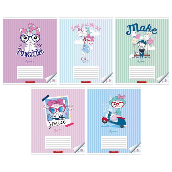 Тетрадь 18л линия цвет/обложка Кошечка в очках (5 видов) полн.УФ 13395/5