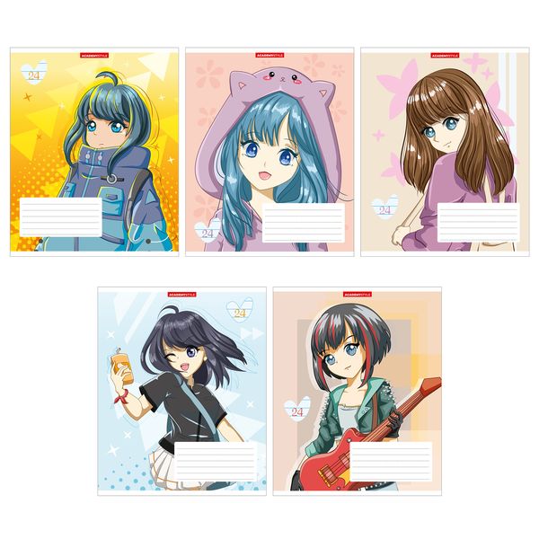 Тетрадь 24л линия цвет/обложка Аниме (5 видов) микротекстура 11909/5